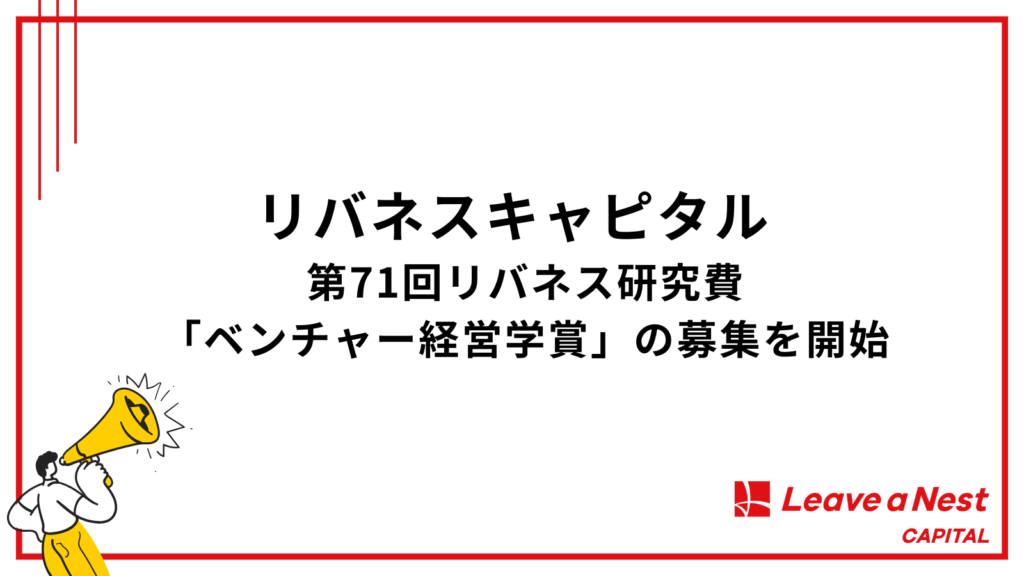 TOP > ニュース > リバネスキャピタル、第71回リバネス研究費「ベンチャー経営学賞」の募集を開始